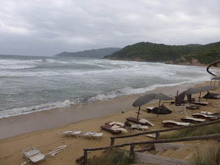 The beach while it was overcast and the sea choppy. But there was bridge every day while the weather was bad so it was not all bad. 😉