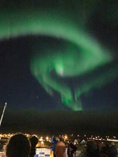 Our camera did not capture these lovely colours. In fact, it captured nothing, the screen was pitch black. But due to the kindness of strangers, we have these photos of the Northern Lights which came up again last night.